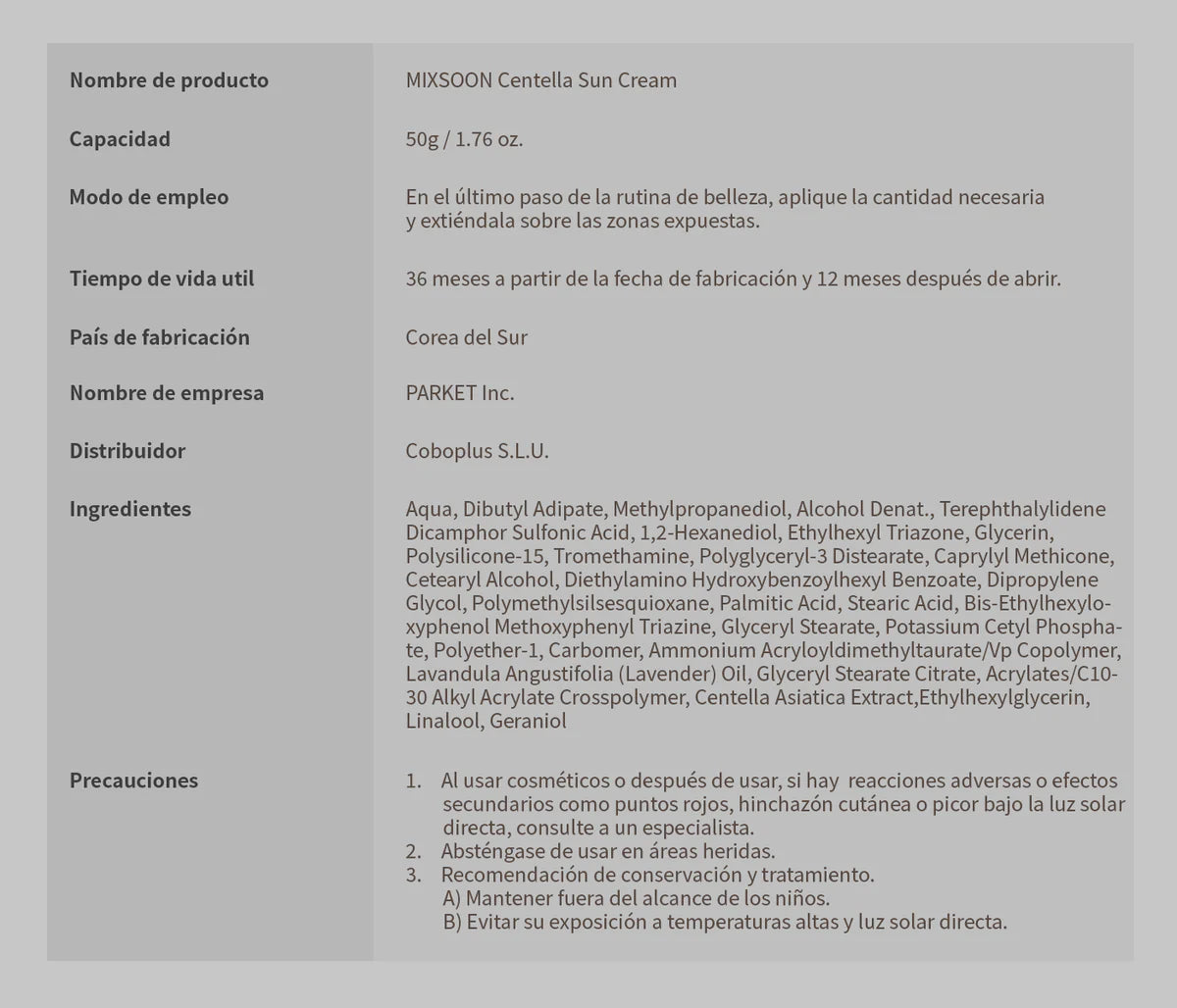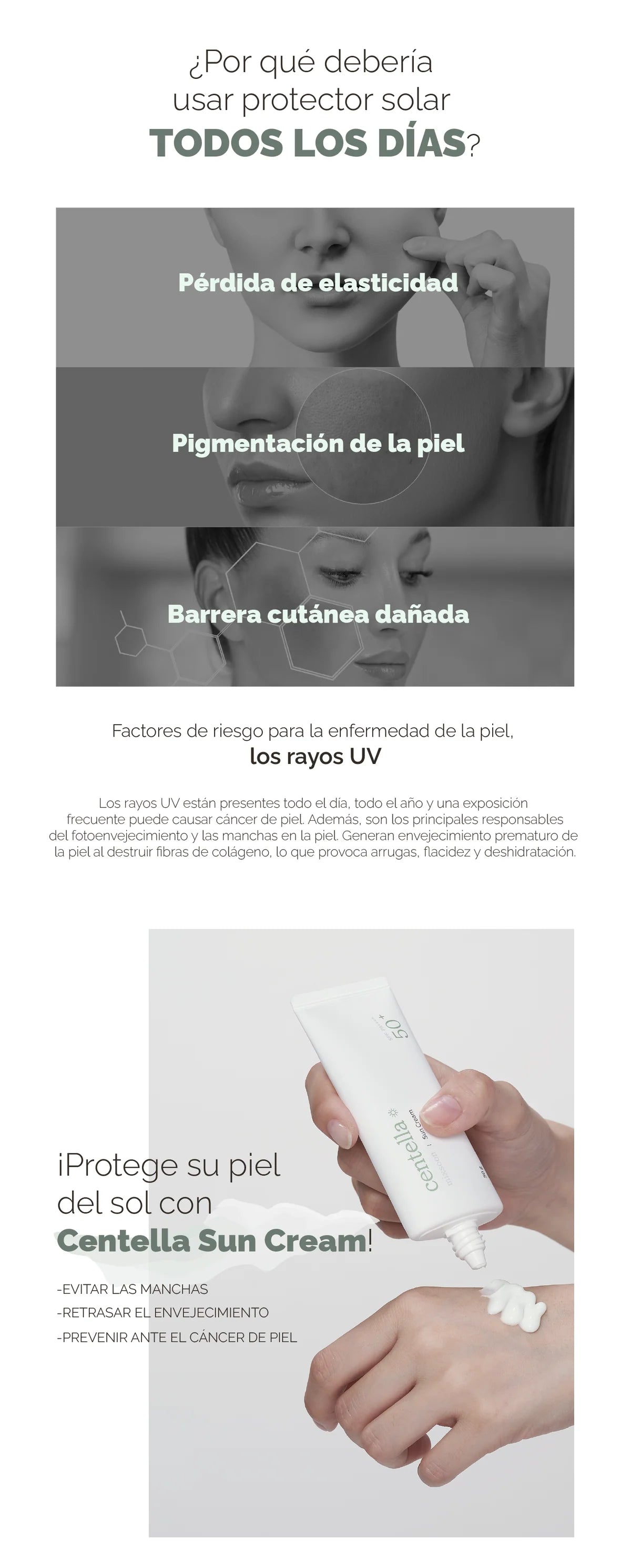 mixsoon Centella Sun Cream de SPF 50+ con filtro UV protege la piel de los rayos solares nocivos. La textura ligera del protector solar se absorbe rápidamente. La crema brinda protección a la piel durante todo el año y ayuda a prevenir el envejecimiento.